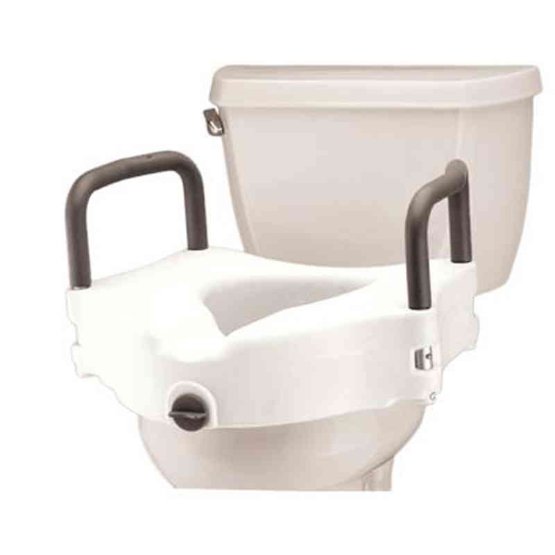 Clamps on to most standard or elongated toilet bowls which makes sitting and standing an ease. Raises seat 5″ and clamps onto most bowls. Handles for extra support.