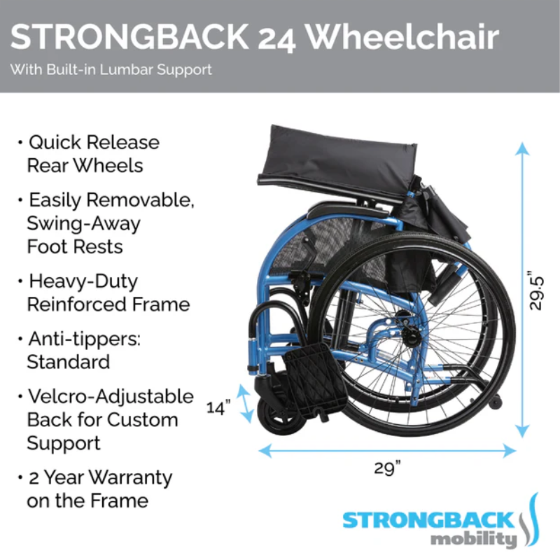 STRONGBACK Comfort : 24″ Rear Wheels, Medium – 18″ seat